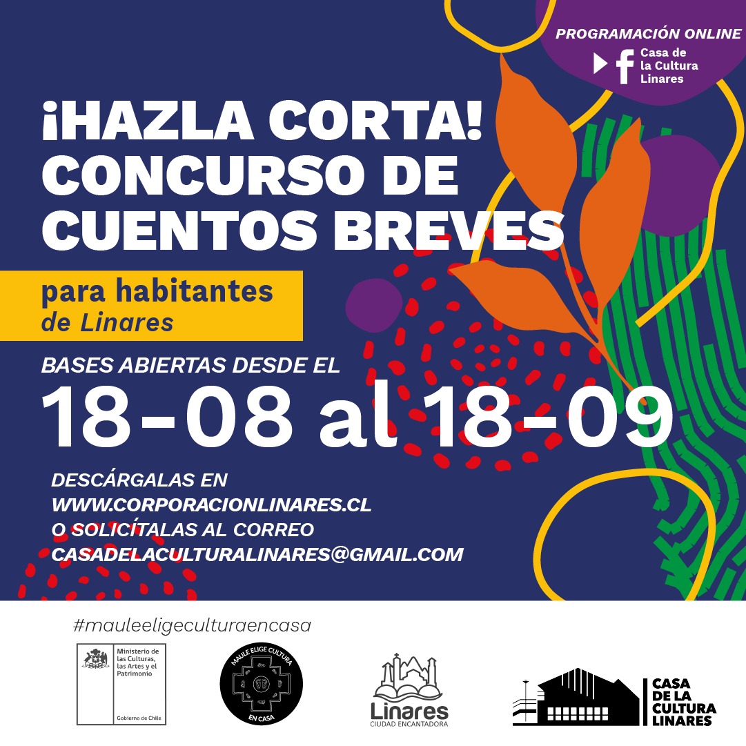 ¡Hazla Corta! es un concurso de cuentos breves presentado por Casa de la Cultura de Linares y el Ministerio de Las Culturas, Las Artes y el Patrimonio Región del Maule a través de su iniciativa Maule Elige Cultura En Casa, que invita a la comunidad de Linares a escribir sobre este año 2021.