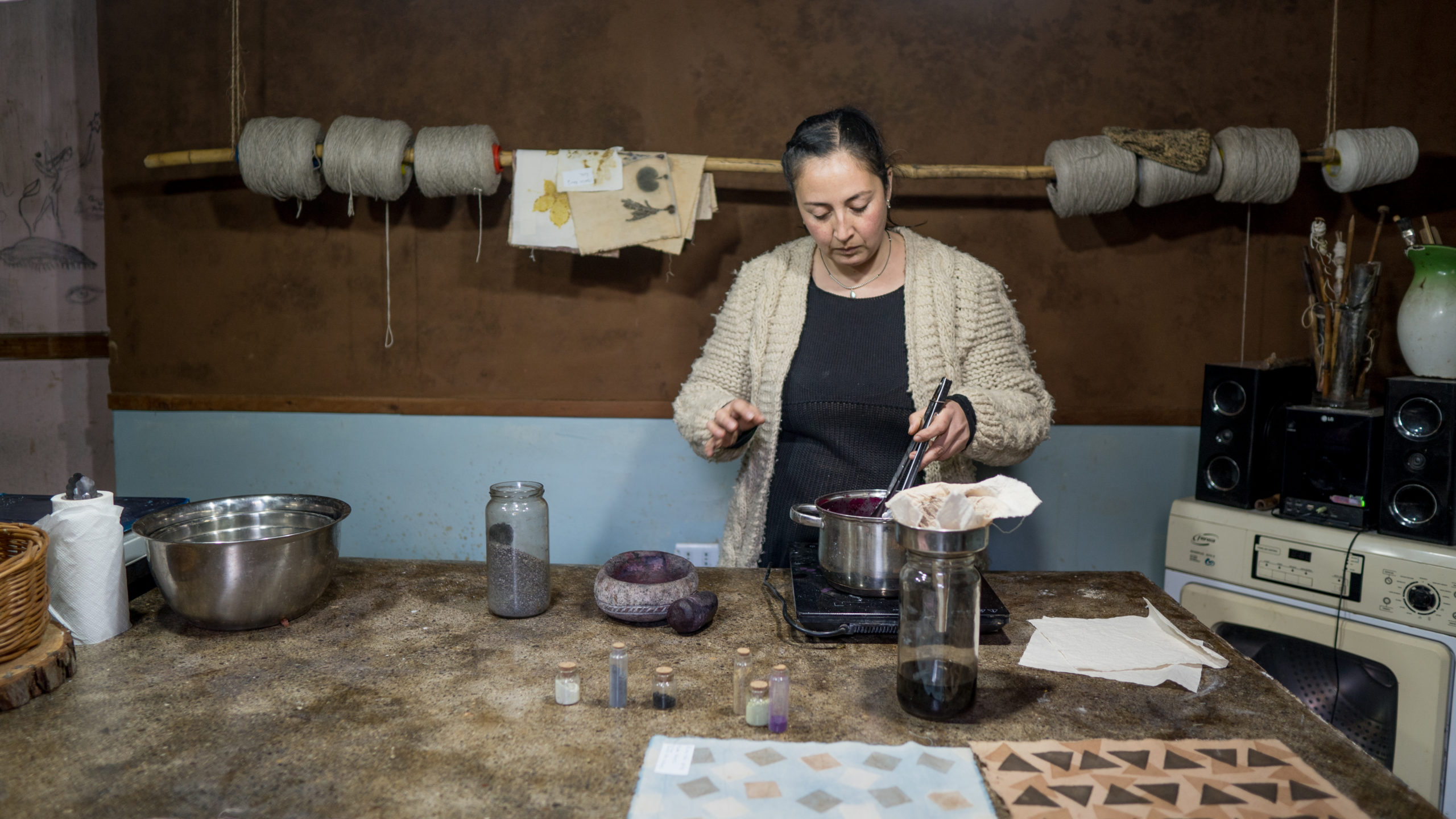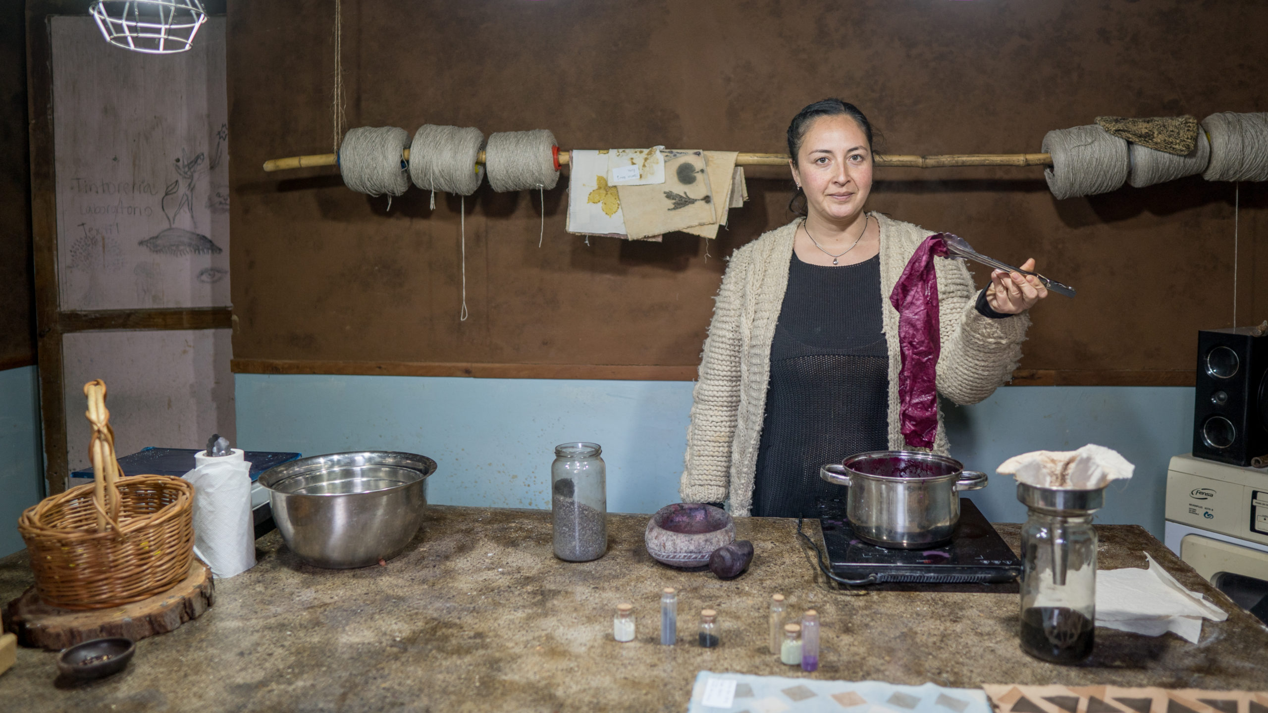 Marcela Ibáñez es tintorera y la creadora de Correvuela, laboratorio textil y escuela de formación integral en tintes y fibras naturales con enfoque local, sustentable y agroecológico. Desde la localidad rural de Rari comparte sus saberes en torno a este oficio, mientras avanza en la investigación sobre la fijación de pigmentos perdidos de nuestra historia.