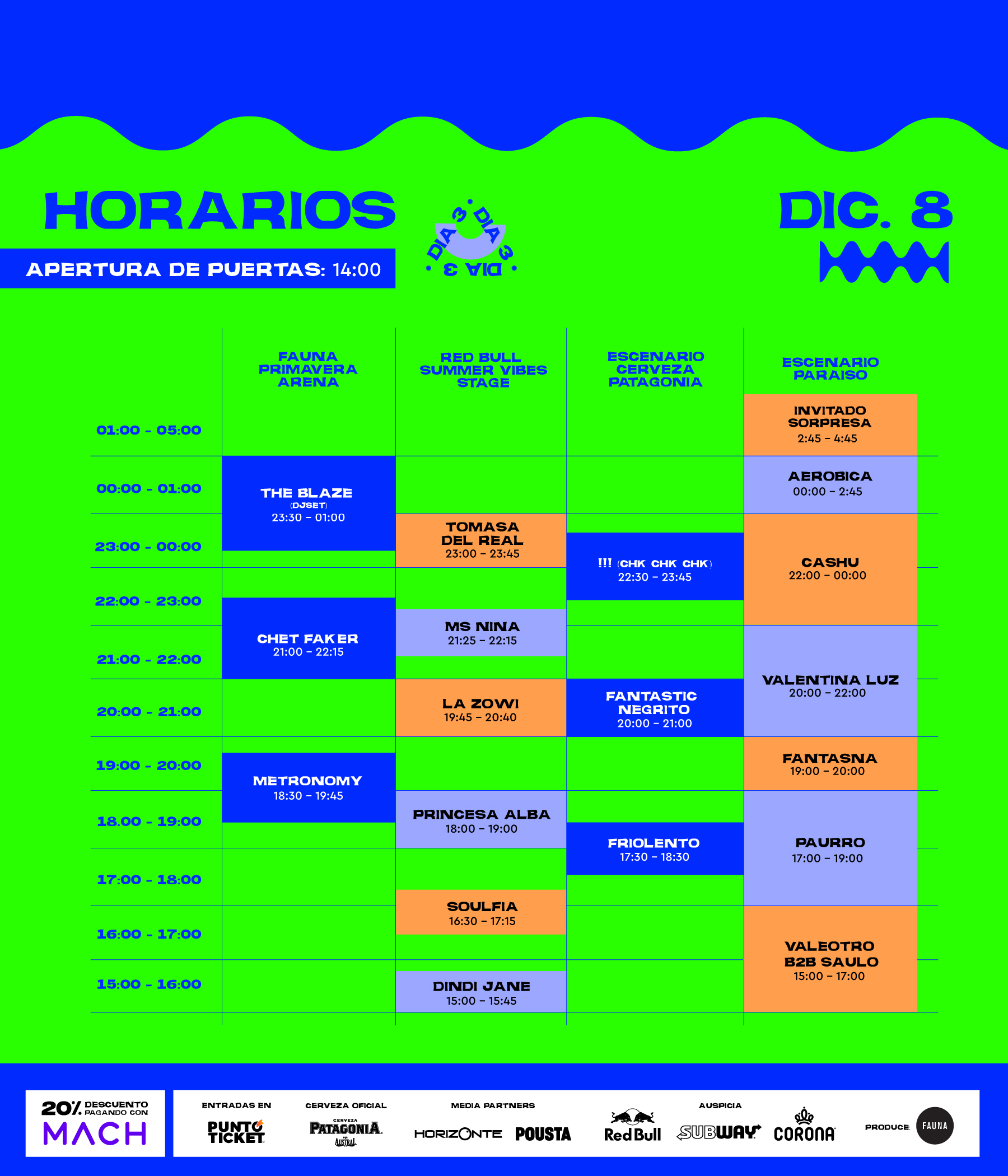 Conoce todo sobre el LINE UP en www.faunaprimaverafest.cl y redes sociales del festival.