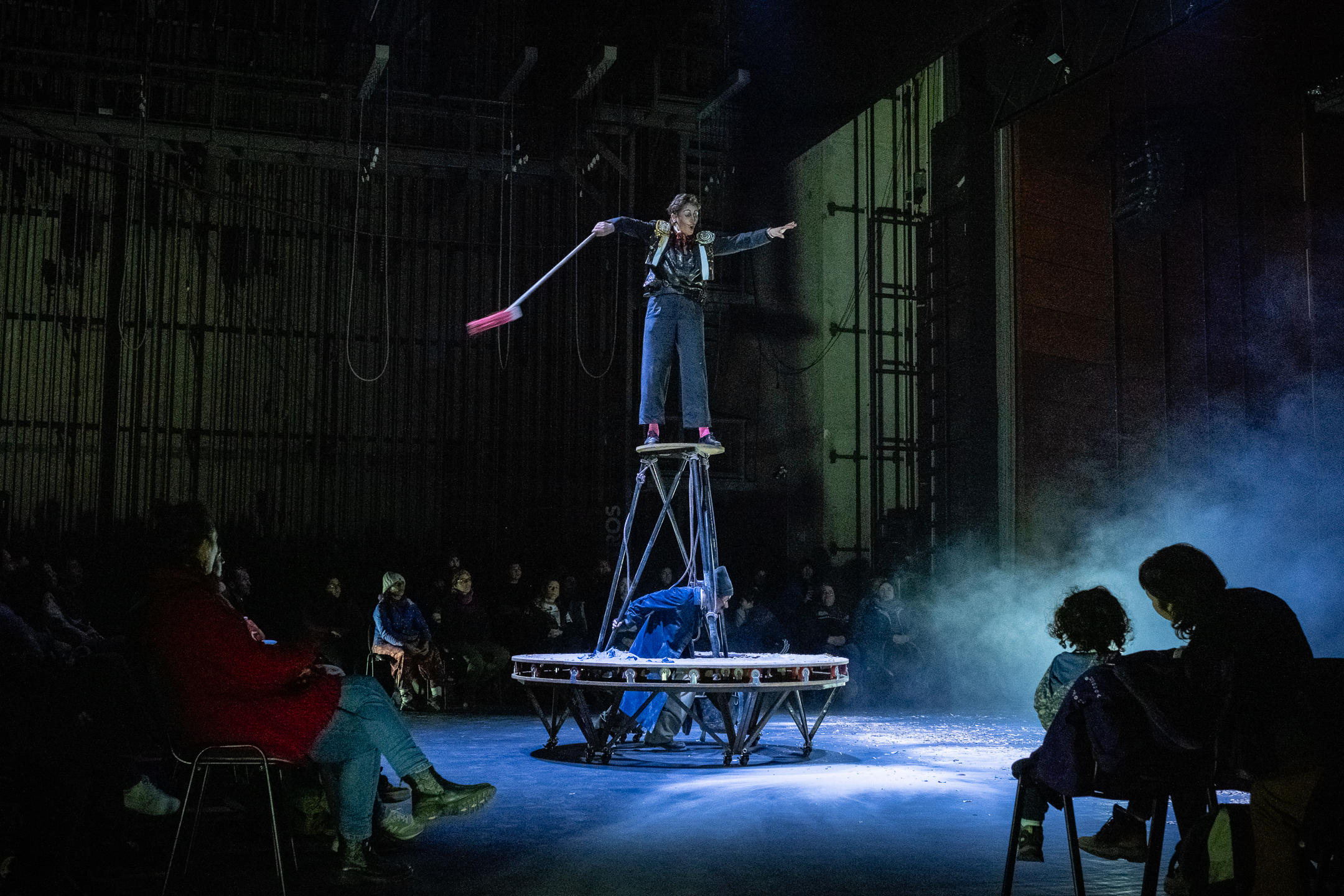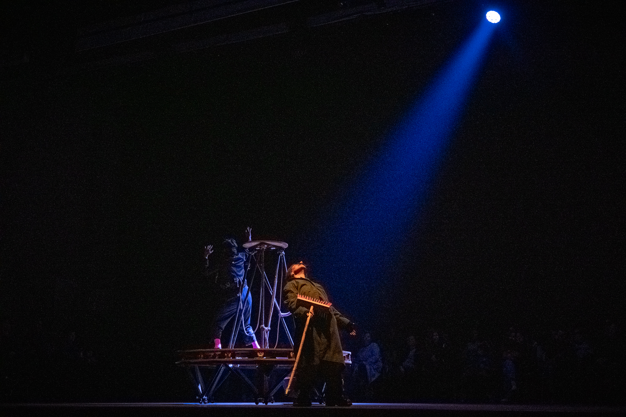 Esta obra aborda nuestra relación con lo temporal, la ficción y lo posible. Barrendero y cuenta cuentos escalan, giran, e intentan reconstruir una memoria propia para salir de ciclos rítmicos que los fueron encerrando en soledades frenéticas.