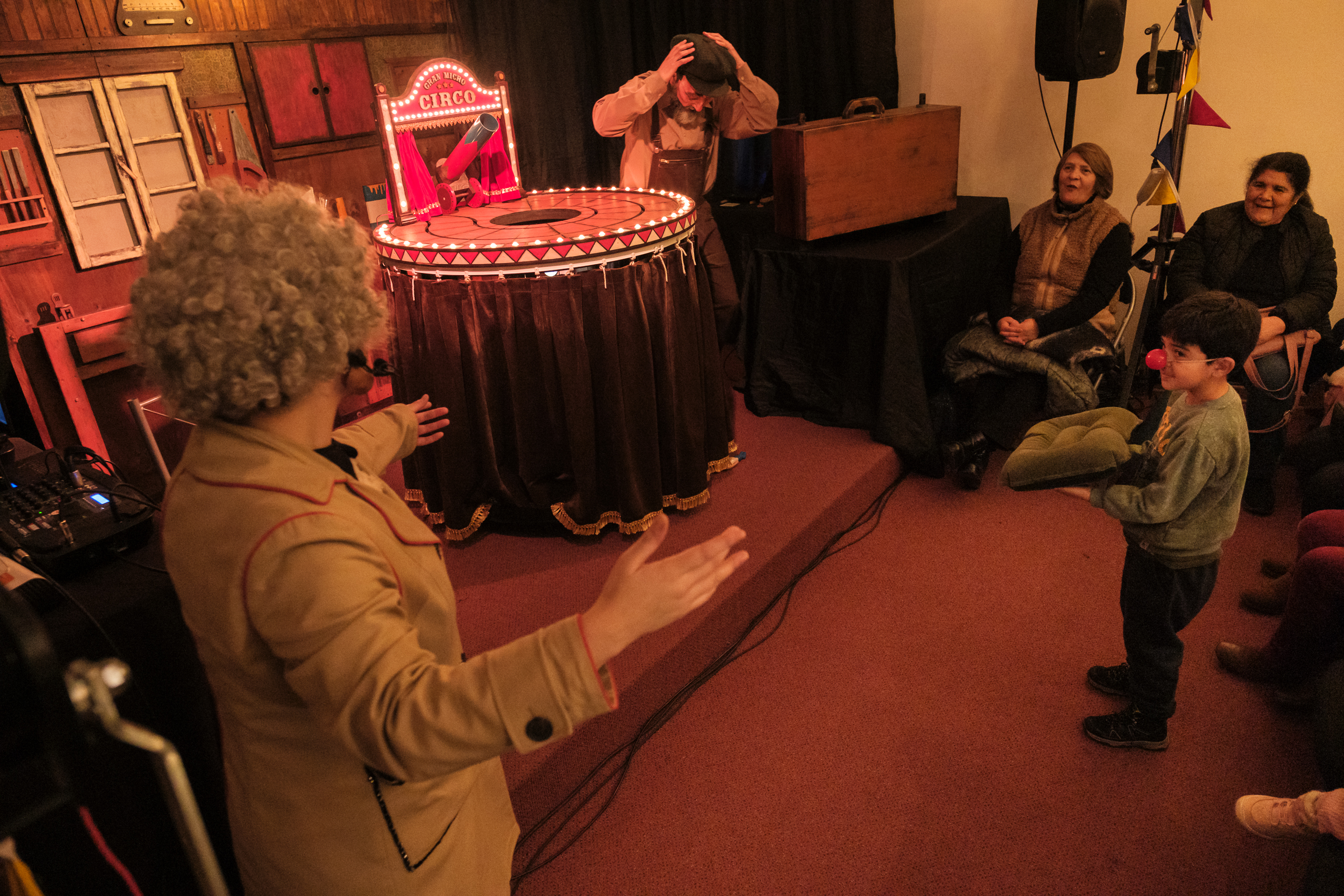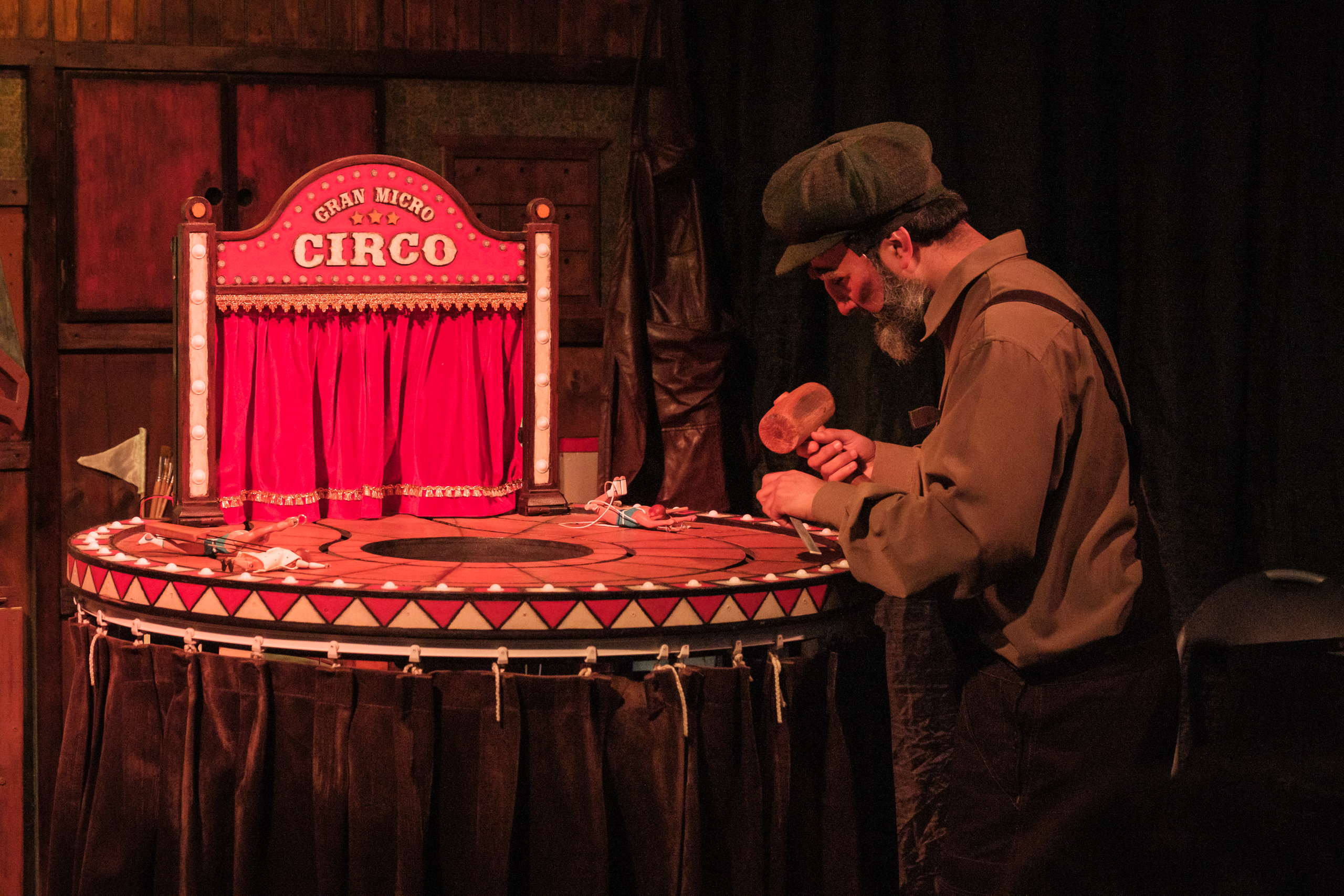Esta obra de teatro familiar es una propuesta escénica en formato pequeño con temática de circo que mezcla el teatro y la artesanías, además de elementos como las máscaras y marionetas.