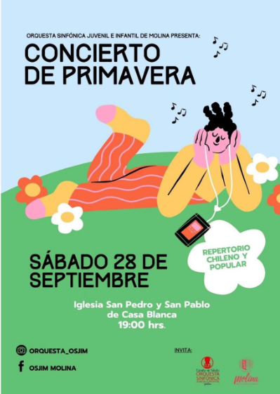 La Orquesta Sinfónica Juvenil e Infantil de Molina se presentará el próximo sábado 28 de octubre a las 19 horas en la Iglesia San Pedro y San Pablo de Casa Blanca. En la jornada se dejará oír una entretenida selección de música chilena y popular para despedir septiembre. La actividad amenizada con instrumentos como violín, contrabajo, flauta traversa, tuba, entre otros, estará bajo la dirección del Músico y Magister en dirección de Orquestas Juveniles e Infantiles, Luis Arriagada Campos, en una presentación con entrada liberada.