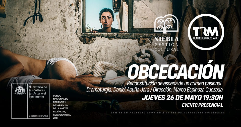 Dos hombres conviven en el campo donde secretamente ocultan una relación amorosa, la cual tiene un abrupto y tétrico final. Uno de ellos mantendrá el cuerpo sin vida del otro por más de 40 días al interior de su casa. Se trata de Obcecación, una obra de teatro basada en un horrible crimen ocurrido en Colbún en 2001 y que se estrena el próximo jueves 26 de mayo a las 19:30 horas en el Teatro Regional del Maule (TRM).