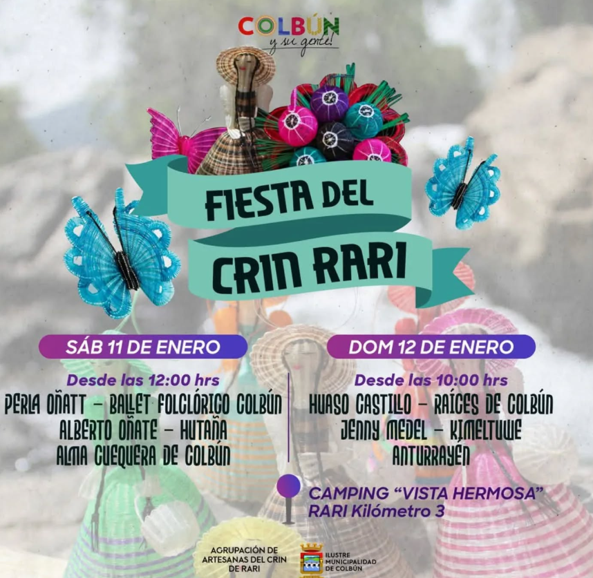 Rari te espera este fin de semana para celebrar La Fiesta del Crin 2025. El sábado 11 y domingo 12 de enero desde el mediodía en Camping Vista Hermosa se realizará esta gran fiesta llena de tradiciones. Te encontrarás con artesanía única en el mundo, arte y creatividad de las artesanas locales, quienes transforman el crin de caballo en hermosos trabajos.