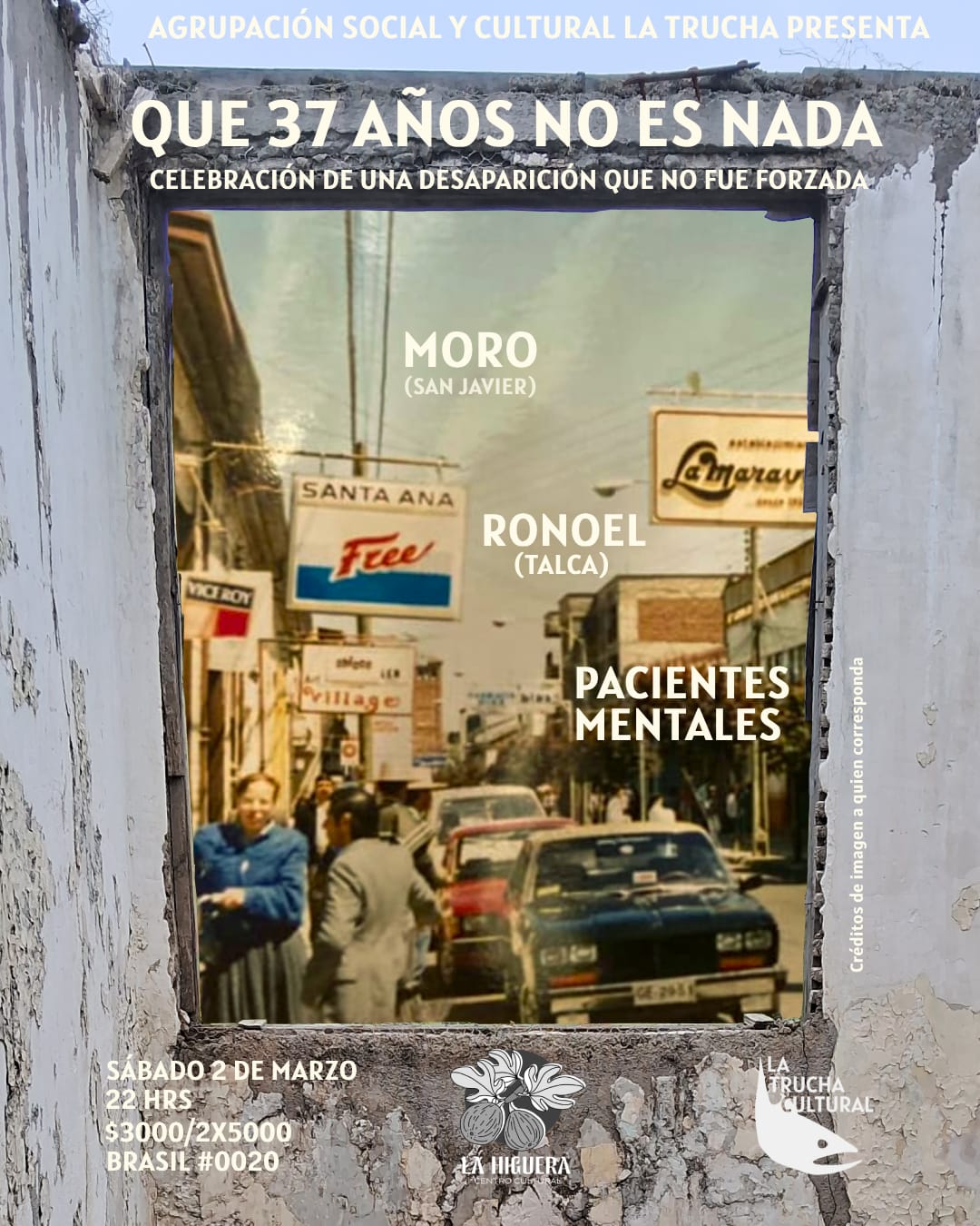 Sábado 2 de marzo, 22:00 horas en LA Higuera Centro Cultural, Brasil #0020, Linares.
